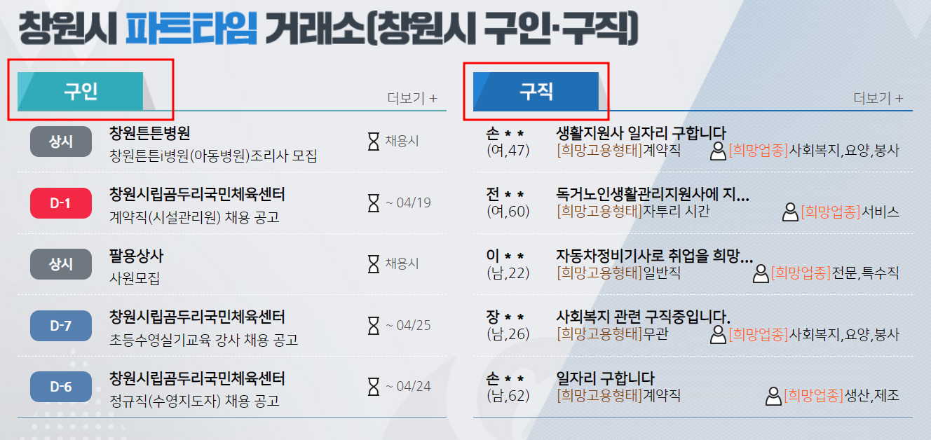 창원시 파트타임 거래소는 구인과 구직자 모두가 이용할 수 있는 사이트로 아래 링크를 통해 바로 접속 하실수 있습니다.